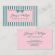 Retro striped business card in teal and pink with a coquette little bow. The feminine look makes the business card perfect for beauticians, boutique owners, event planners, interior designers, makeup artists, hair stylists, jewelry makers, candy maker, scented candle maker, and more. Personalize with your name or business name in a pretty script.