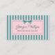 Carte De Visite Teal & Pink Stripes & Bow Retro