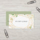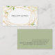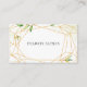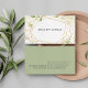 Les cartes de visite botaniques chics portent votre nom ou nom d'entreprise entouré d'une bordure géométrique dorée agrémentée de minuscules feuilles d'aquarelle verte. Ajoutez vos coordonnées complètes à l'arrière en noir cassé sur vert pâle. Un choix unique et élégant pour les paysagistes, architectes paysagistes, fleuristes et entreprises vertes.
