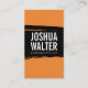 Ce Simple Gras Texte Noir Orange Brossé carte de visite est parfait pour une communication expressive. Parfait pour les créatifs, et ceux qui recherchent un design plus frappant. Ces cartes s'associent bien avec le stock papier épais ou lin de qualité supérieure. Tous les beaux cartes de visite peuvent être entièrement customisés. ©2010 Joshua Martin