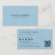 Texture simple en lin bleu clair avec typographie personnalisable noir. Les icônes des médias sociaux et un code QR.