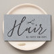 Elégant modèle de carte de visite personnalisable avec ciseaux noirs icône /texture gris arrière - plan et écriture manuscrite texte en gras. Design moderne et propre, parfait pour coiffeur, coiffeur.
