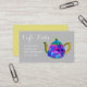 Un joli carte de visite de style moderne adapté à un café - café mobile, café ou thé. Ce design fantaisiste montre une illustration d'une douce aquarelle de style moderne de théière simple avec arrière - plan gris. La couleur arrière - plan peut être changée selon vos goûts. Ce carte de visite est entièrement personnalisable pour inclure vos propres informations personnelles.