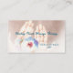 Aquarelle avec éthérée, couleurs apaisantes, mains ouvertes et la floraison de la protéa blanche. Subtile texture rose-or rose dans l'arrière - plan du devant. Revenez avec des icônes et des informations personnalisées. Personnalisez toutes les fonctionnalités de texte. Les polices personnalisables sont un script de brosse moderne et harmonisant l'impression claire. Belle conception pour de nombreuses entreprises de santé. Idéal pour les massothérapeutes, salons, spas, professionnels de médecine alternative, etc. Mauve pâle, blanc cassé, bleu cobalt doux. Texte turquoise pour le nom/l'entreprise et noir pour l'info (changer si vous le souhaitez).