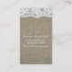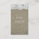 Cartes de visite Toile de jute & Dentelle Simple Élégant Chic Campagnard Rustique