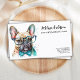 Faites connaître votre entreprise de garde d'animaux / toilettage de chiens avec ces cartes de visite élégantes et mignonnes pour promeneurs de chiens et gardiens d'animaux avec un design de chiot bouledogue français, ainsi que des accessoires assortis.