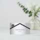 Un arrière - plan à l'aspect faux argent avec une maison/toit abstrait noir. Personnalisez et ajoutez votre nom et votre texte à l'avant. Retour : Modèles pour votre nom, titre, numéro de téléphone, adresse postale et de site, QR-code à votre site Web ou compte de médias sociaux.