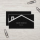 Un arrière - plan noir avec une maison/toit abstrait à l'aspect argenté. Personnalisez et ajoutez votre nom et votre texte à l'avant. Retour : Modèles pour votre nom, titre, numéro de téléphone, adresse postale et de site, QR-code à votre site Web ou compte de médias sociaux.