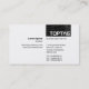Un modèle de carte de visite élégant et attrayant avec une balise supérieure rectangle couleur qui, lorsqu'il est customisé, fournit un style de logo simple mais efficace. Idéal pour les initiales de 3 lettres, les noms courts de 4 lettres, ou en ajustant la taille de la police, il peut accueillir des noms plus longs. Des textes supplémentaires et de petits symboles peuvent également être ajoutés pour le rendre encore plus distinctif. Compte tenu des nombreuses possibilités que cette conception offre une sélection toujours croissante de versions alternatives sont également disponibles dans mon magasin. Les éléments de texte sont disposés en deux colonnes disposées à droite et à gauche autour d'un espace centré aligné. La conception peut accueillir la plupart des entrées de carte de visite normales, mais il est préférable d'éviter les lignes de texte trop longues afin de maintenir l'équilibre de la conception. Le verso de la carte a été laissé vide, ce qui peut être utile pour la prise de notes ou peut être customisé plus loin.