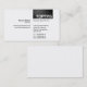 Un modèle de carte de visite élégant et attrayant avec une balise supérieure rectangle couleur qui, lorsqu'il est customisé, fournit un style de logo simple mais efficace. Idéal pour les initiales de 3 lettres, les noms courts de 4 lettres, ou en ajustant la taille de la police, il peut accueillir des noms plus longs. Des textes supplémentaires et de petits symboles peuvent également être ajoutés pour le rendre encore plus distinctif. Compte tenu des nombreuses possibilités que cette conception offre une sélection toujours croissante de versions alternatives sont également disponibles dans mon magasin. Les éléments de texte sont disposés en deux colonnes disposées à droite et à gauche autour d'un espace centré aligné. La conception peut accueillir la plupart des entrées de carte de visite normales, mais il est préférable d'éviter les lignes de texte trop longues afin de maintenir l'équilibre de la conception. Le verso de la carte a été laissé vide, ce qui peut être utile pour la prise de notes ou peut être customisé plus loin.
