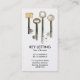 Modèle de carte de visite avec un arrangement de clés. Principaux détails de l'entreprise sur l'avant, avec nom et coordonnées personnelles sur l'arrière.Peut être customisé de plusieurs façons convenant à de nombreux types d'entreprises, notamment les propriétaires, la gestion immobilière, les agences de location. serrer les forgerons, la sécurité, etc