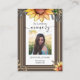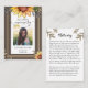 Dans Loving Memory Obitural Carte de souvenir. L'oeuvre de tournesol a été dessinée à la main et peinte avec des aquarelles. Les feuilles Arrière - plans étaient dessinés à la main et numériquement colorés. Design de tournesol doux et légèrement rustique. Facile à utiliser modèle. Oeuvre de Valarie Wade. Tout le texte est réglable. Ajoutez simplement votre propre texte nécrologique et téléchargez votre propre photo.