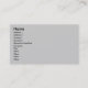 Carte de visite, taille : États-Unis : 8.9 cm x 5.1 cm, papier : Standard Semi-brillant, coins : Carré