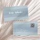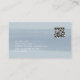 Ces cartes de visite modernes et professionnels présentent un trait de brosse bleu aquarelle transparent et doux sur un arrière - plan assorti. Votre nom apparaît en caractères gras et blancs modernes. Le dos a un code QR numérisable pour vous permettre d'ajouter votre compte de médias sociaux ou votre site Web.