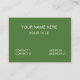 Carte de visite, taille : États-Unis : 8.9 cm x 5.1 cm, papier : Standard Semi-brillant, coins : Carré