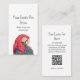 Topical bird pet store business card, with a colorful macaw illustration and customizable typography lettering. You also add your website to the QR code field for additional marketing. A great way to add a touch of the jungle to your business marketing.