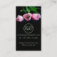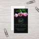 Une photo à vie morte de tulipes roses fraîches coupées, avec de longues tiges vertes, posées sur du tissu noir. Copyright ©Kimberly J Tilley. Customisez ce carte de visite en mettant à jour le modèle avec vos informations et votre logo.