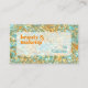 Carte de visite de maquilleuse artistique magnifique. Avec un motif marbré abstrait contemporain de couleur turquoise aqua bleu vert et or faux brillant, et une police moderne rétro et minimaliste. Cliquez sur 'Personnaliser' pour trouver le modèle prêt à être personnalisé avec votre nom d'entreprise unique, votre profession et vos coordonnées, votre texte et votre code QR de choix. Ce design particulièrement joli et unique a été créé pour ceux qui aiment les designs abstraits géométriques classiques sophistiqués.
