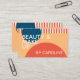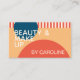 Beau carte de visite de maquillage artistique. Avec un bleu turquoise contemporain, rouille, orange et ivoire blanc cassé cercles et rayures motif sur un arrière - plan rose vif combiné à une police minimaliste moderne. Cliquez sur "Personnalisez" pour trouver le modèle prêt à être customisé avec votre nom d'entreprise unique, votre profession et vos coordonnées, et le texte de votre choix. Ce design particulier, joli et unique, a été conçu pour ceux qui aiment les pastels aux couleurs vives et les dessins abstraits géométriques classiques sophistiqués.