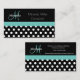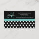 Carte De Visite Turquoise vert Monogramme noir blanc Polka point