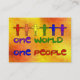 L'arc-en-ciel figure les bras et le support de lien sur les mots : "Une personnes du monde un" pour recevoir le message que la paix du monde commence par nous. Nous devons nous entendre avec l'un l'autre avant que nous puissions avoir la paix.