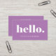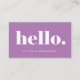 Ces cartes de visite fantaisistes et super élégants, bleus et blancs disent simplement "bonjour". en caractères gras et blanc moderne sur un arrière - plan violet de lavande. Ajoutez facilement vos coordonnées sur les réseaux sociaux à l'arrière.
