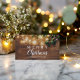 Photo de Noël rustique de fête d'entreprise avec du bois brun, des lampes à cordes de Noël, une photo de faux-pied rouge et vert, des fêtes d'entreprise parfaites et des voeux de Noël.