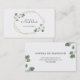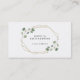 Ces cartes de visite minimalistes et branchés présentent des feuilles d'eucalyptus vert simple et du feuillage sur un cadre central géométrique en faux or et un arrière - plan blanc propre.