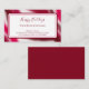 Ajoutez votre nom d'entreprise et vos coordonnées à ce carte de visite rayé rouge et rose et blanc festif. Customisez le texte à vos fins. "Happy Holidays" écrit en rouge profond élégant script contemporain sur un arrière - plan blanc peut être édité. Ajoutez votre carte de visite à des cadeaux de vacances, des forfaits ou des échantillons. Les rayures texturées super de sucre de canne sont ma conception originale. J'ai pris les couleurs vives d'une photo originale d'une fleur de pivoine. Le motif et le scintillement de bonbons entourent le texte simple et moderne sur un carré blanc. Personnalisez ce carte de visite de vacances pour vos cartes de Noël, cadeaux et objets promotionnels.