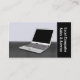 Illustration d'un ordinateur portable sur un bureau. Ce carte de visite moderne et professionnel dispose d'un espace à droite pour le nom de votre entreprise en texte vertical. Excellent carte de visite pour les techniciens en informatique, les sociétés de vente et de réparation.