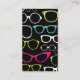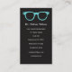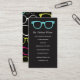 Ce sont les cartes de visite élégants parfaits pour des ophtalmologistes et des optométristes. Les cartes comportent une disposition verticale avec un arrière - plan noir avec un motif imprimé brillamment coloré des cadres de lunettes sur le dos et les cadres bleus assortis en verre graphiques sur l'avant. Employez la suffisance dans les domaines vides pour customiser facilement ces cartes avec votre information.