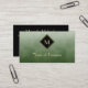 Carte De Visite Vert Brossé Élégant Avec Monogramme Or Simple