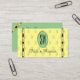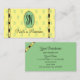 Carte De Visite Vert Sage Jaune clair avec Monogramme à motifs