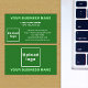 Carte de visite que vous pouvez customiser pour vos clients ou clients de trouver facilement votre adresse professionnelle et les coordonnées de votre contact. Les couleurs et le style de design sont des textes vert clair et blanc sur l'arrière - plan vert et les textes centrés de votre nom d'entreprise, votre nom et votre titre. Pour customiser ce carte de visite, téléchargez votre logo d'entreprise, tapez votre nom d'entreprise, votre nom, votre titre, votre adresse, votre numéro de téléphone, votre courriel et votre site Web ou votre page de médias sociaux professionnels. Après avoir téléchargé le logo et tapé des textes, veuillez vérifier l'apparence sur les côtés avant et arrière. Si l'apparence vous plaît, vous pouvez passer votre commande maintenant. Si vous avez besoin de redimensionner et déplacer le logo et les textes pour s'adapter à ce carte de visite, s'il vous plaît changer dans l'outil de conception. Vous pouvez également effectuer d'autres modifications dans l'outil de conception en fonction de l'apparence de ce carte de visite que vous préférez, comme changer la couleur arrière - plan, la couleur de police et le style de police.