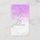 Carte de visite vertical de parties scintillantes de maquilleur pourpre élégant moderne élégant à la mode de marbre avec les icônes sociales ! (Facebook, Instagram, gazouillement)