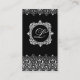 Un art déco a encadré la conception de carte de visite noire avec le côté 2. Tous les secteurs des textes sont personnalisables. Customisez vos initiales à l'intérieur du monogramme facilement. Très chic