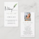 Êtes-vous un agent de signature de prêts notariaux qui cherche à faire une impression? Ne cherchez pas plus loin - le Carte de visite vertical minimaliste photo vert et blanc est ici. Ce carte de visite de 3,5 po x 2,0 po, joliment conçu, allie élégance et professionnalisme avec son stylo calligraphie à plumes vertes et son design simple mais frappant. Il a tous vos coordonnées commerciales importantes, vous ne manquez donc jamais une occasion de vous connecter. Au verso de la carte se trouve une photo professionnelle et une liste de services pour vraiment impressionner les clients ou partenaires potentiels. Avec ce carte de visite époustouflant, n'attendez pas l'occasion de le créer - Faites votre marque avec des cartes de qualité aujourd'hui! View Suite : https://www.zazzle.com/collections/modern_green_notary_business_suite-119405649063316667 Contacter le concepteur pour les produits correspondants. Copyright Surridge Design Co, tous droits réservés.