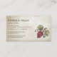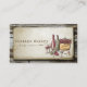 Le modèle de carte de visite artistique du domaine vinicole présente une image peinte à la main d'un panier de raisins, de deux bouteilles de vin et de verres de vin et d'une place d'ouvre-vin sur une planche en bois de grange vintage. Les images à l'avant et à l'arrière peuvent être redimensionnées/déplacées/supprimées. Personnalisez-le avec vos propres informations ou customisez-le davantage si vous devez modifier le texte, la disposition du texte, la police, la couleur de police, la taille de police ou la taille du carte de visite. Peut également être utilisé pour votre mariage de vignoble/vinicole.