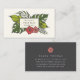 Les cartes de visite chics tropicaux portent votre nom et/ou votre nom d'entreprise nichés dans un cadre de bananes vertes et de feuilles monstères aux fleurs d'hibiscus rouges et coralliens illustrés à la main vintage, sur un arrière - plan en ivoire doux. Personnalisez avec vos coordonnées au verso en ivoire sur gris fusain avec un hibiscus corallien assorti.