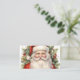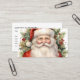 Carte de visite avec une jolie aquarelle de style vintage. Le Père Noël dans son costume rouge avec des joues jolies et un visage souriant. Entouré de pins et de houx.