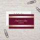 Cartes de visite élégants et impressionnants avec deux lignes d'illustration de bandes de papier FAUX en or rose. Customisez le devant avec deux lignes de texte personnalisé sur un arrière - plan roux/bordeaux à la sobriété trendy, et ajoutez vos coordonnées complètes au dos en utilisant le modèle. Un design chic pour tous salons de beauté, coiffeurs, boutiques de mode, wedding planners, bijoutiers, décorateurs d'intérieur et professionnels du .image. Autre couleur