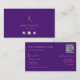 Carte De Visite Violet royal ordinaire avec monogramme QRCode et b