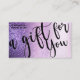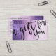 C'est le carte de visite cadeau parfait pour une femme d'affaires branchée, élégante, féminine et moderne. Ce design présente une simple typographie manuscrite noire sur un faux imprimé magenta-violet en rose rose en rose brillant parties scintillant brillant sombre dégradé glamour et arrière - plan chic. C'est la façon idéale de permettre à vos clients d'acheter un cadeau pour leur famille et leurs amis et en même temps de promouvoir votre entreprise. ***REMARQUE IMPORTANTE DE CONCEPTION : Pour toute demande de conception personnalisée, comme les demandes de produit assorties, les changements de couleur, les changements de placement ou toute autre demande de modification, veuillez cliquer sur le bouton "CONTACTER" ou envoyer un courriel au concepteur directement à lafemme.art@gmail.com. Vous pouvez même lui envoyer par courriel une demande pour un design entièrement personnalisé et nouveau.
