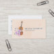 Joli carte de visite professionnel élégant avec un design féminin. Illustré d'une aquarelle représentant un violon en bois, des pantoufles de ballet rose se reposent contre elle et sont décorés de fleurs et de papillons. Placez-vous sur un arrière - plan rose pêche.