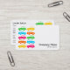 Un modèle de carte professionnelle/profil avec un motif composé de dix symboles de voiture dans cinq couleurs différentes et voyageant dans des directions alternées. Nom de l'entreprise et type d'entreprise sur l'avant équilibré avec le motif sur la gauche. Nommez un autre contact au verso avec le motif à droite. Prêt à être customisé avec vos détails. Peut convenir à une entreprise de taxi, une école de conduite ou toute entreprise liée à la circulation automobile.