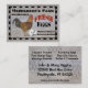 Un design campagnard, avec l'image d'un poulet sur la gauche avec du fil de poulet derrière lui, sept beaux oeufs blancs sous le texte noir et rouge "OEUFS FRAIS DE FERME". Il y a une bordure noire à damiers autour de l'extérieur, le tout sur une planche patinée en bois. Personnalisez l'avant et l'arrière de ces oeufs frais, les cartes de visite de fermes de poulets avec votre nom de ferme, numéro de téléphone et heures d'ouverture sur le devant de la carte et votre nom, adresse, site Web et tous les mots que vous aimez sur le dos.