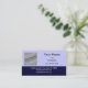 Un modèle de carte de visite simple avec des lettres sans serif et un arrière - plan bleu ciel et une bande bleue marine en bas. Ajoutez votre propre image ou logo carré pour faire de ces cartes de visite votre propre image. Customisez-le pour modifier les polices de carte, supprimer les champs, modifier les couleurs arrière - plans, etc.