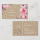 This elegant business card features watercolor painted pink flowers on a Kraft paper background. With a scannable qr code on the backside.
