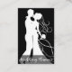 Carte de visite classique pour une société de services Wedding planner ou Mariage créée avec un graphique de mariée et de mariée sur le devant et vos coordonnées et avec la liste des services que vous pouvez personnaliser en ligne.