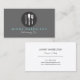 Un trio d'ustensiles de cuisine communs avec votre nom ou nom de société fait le logo parfait sur ce carte de visite personnalisable pour une entreprise de restauration, boulangerie, restaurant, chef personnel, rédacteur en chef, food truck, ou toute entreprise alimentaire. © 1201AM CREATIVE
